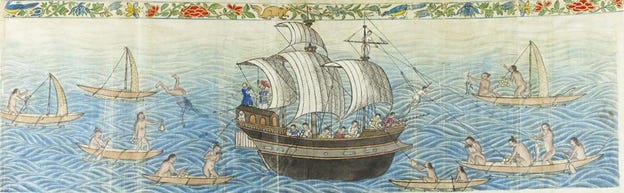 Quizá el viaje más accidentado del que tenemos noticia fue el que emprendió el comodoro George Anson en 1740, con la intención de capturar uno de los galeones españoles que transportaban plata desde Manila. Piratería mal disfrazada de expedición militar.